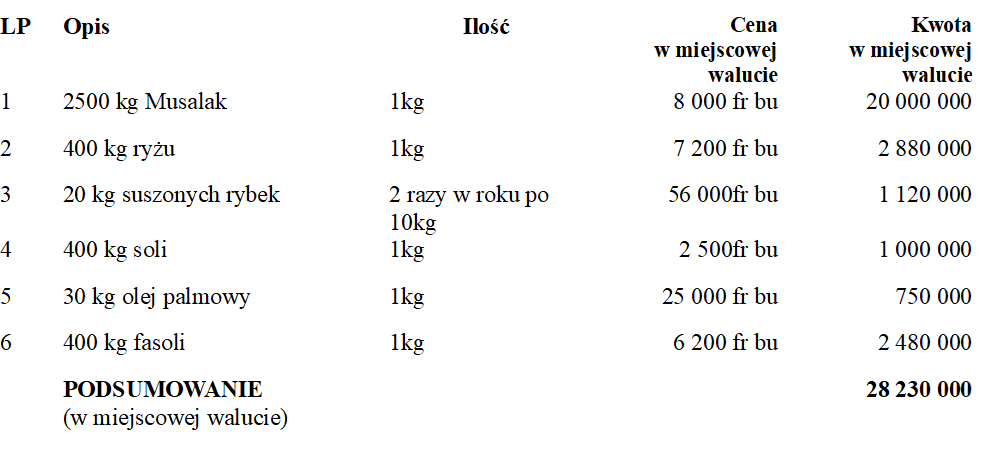Podsumowanie w miejscowej walucie: 28 230 000 franków burundyjskich