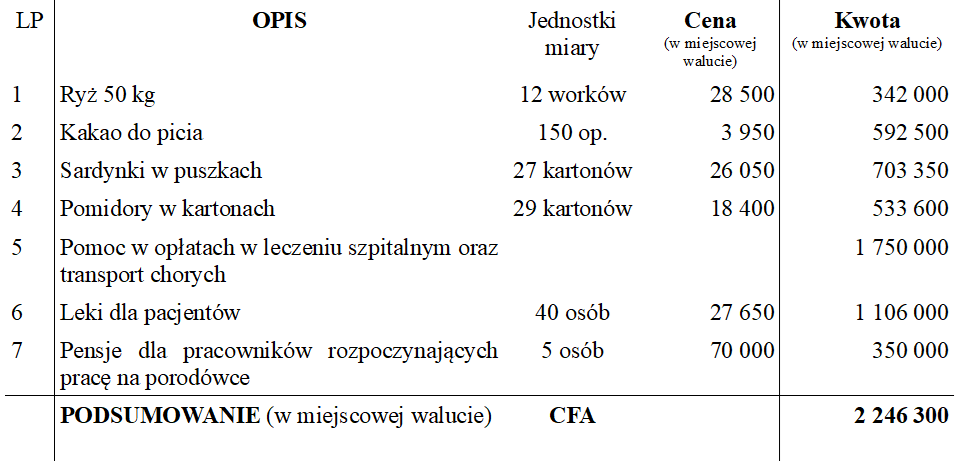 Takie osoby często czują się opuszczone przez społeczeństwo, jak również przez najbliższych. Niestety, ale samo bycie przy nich i wysłuchanie ich, nie zmieni ich codzienności. Chorzy są bardzo wdzięczni, gdy otrzymają podstawową żywność, która wzmocni ich wyczerpujący się organizm. Towarzyszenie takim ludziom, to okazywanie im miłości i zrozumienia bez względu na błędy, jakie każdy z nas w życiu popełnia. Nie chcemy odsyłać chorego bez wsparcia, gdy nie ma on za co kupić leków lub zapłacić za opatrunki. Gdyby nie Wasza stała pomoc, byłabym zmuszona odmawiać im pomocy, a przecież  chodzi tu o życie ludzkie. Ponieważ w najbliższych miesiącach pragnę otworzyć oddział położniczy, dodatkowo potrzebna mi będzie na początku pomoc w zapewnieniu wypłat dla nowozatrudnionych pracowników, dlatego też z serca proszę o wsparcie. Potrzebna jest pomoc zarażonym i wierzę, że dzięki Wam będę mogła kontynuować pomaganie chorym zgłaszającym się do naszego ośrodka zdrowia.