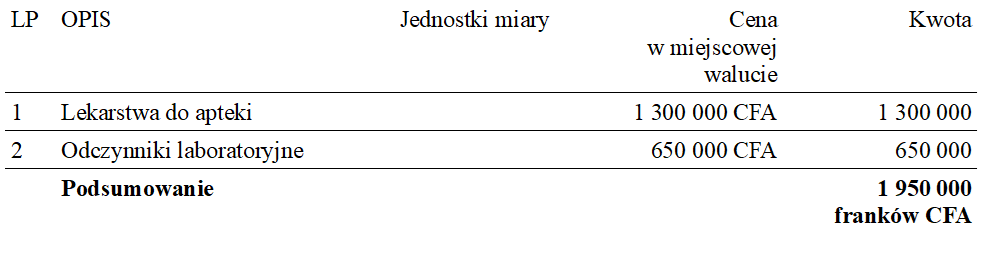 Zakup lekarstw i odczynników laboratoryjnych dla Ośrodka Zdrowia w Esseng